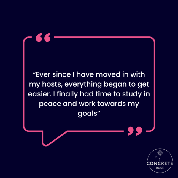If you’re in the position where you have a spare room – maybe recently vacated by a child who is going to university – could you consider hosting a young adult or care-experienced student, giving them the opportunity to beat the odds and build a firm foundation for the future? If you don’t have a room, then why not consider becoming a mentor for a care-experienced student via our mentoring programme: www.concretrose.co.uk/mentoring